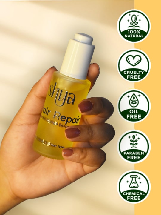 Bid farewell to hair fall woes! Shya Hair Repair Oil strengthens hair from the roots, reducing breakage and preventing excessive hair loss. Experience the joy of finding fewer strands on your brush and more on your head.